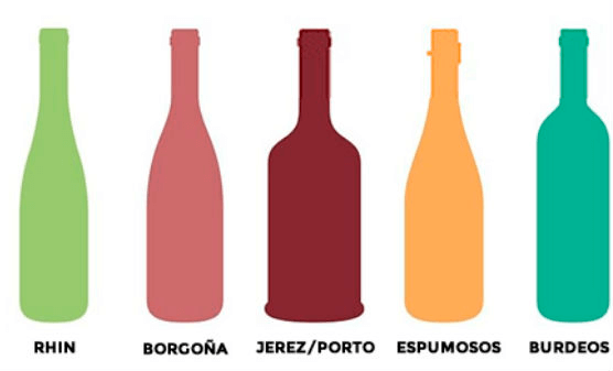 Pero, a pesar de que tengan las mismas partes, no todas las botellas son iguales. Variaciones en la inclinación de los hombros, la longitud del cuello, la anchura del cuerpo, el tamaño o el color dan lugar a distintos modelos. Veamos cuáles son los más comunes: