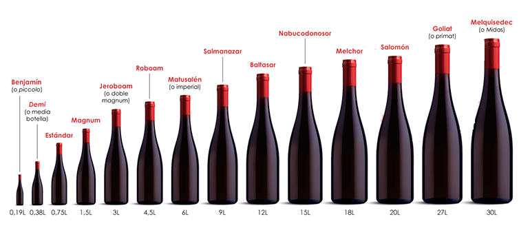 Estos son los nombres que reciben las distintas botellas según su tamaño: